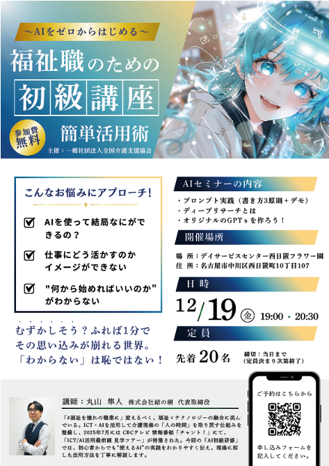 2025年12月19日デイサービスセンター西日置フラワー園にて、全国介護支援協会主催の「福祉職のためのAI初級講座」を開催いたしました。