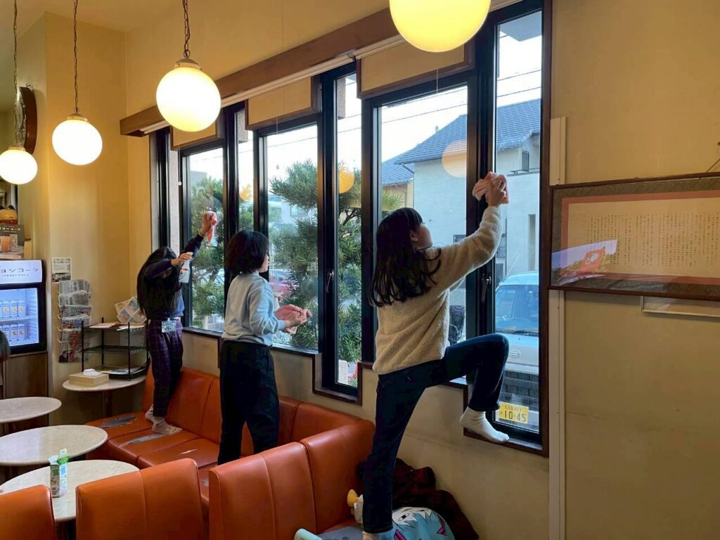 年内最後の活動日となった26日には、一年間お世話になった場所への感謝を込めて、子どもたち全員で八千代湯の大掃除を行いました。